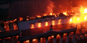 २४ भदौ, काठमाडौं : प्रदर्शनकारीले सिंहदरबारको मुख्य भवनमा समेत आगजनी गरेका छन् । सिंहदरबारको कोठा-कोठामा आगो दन्किरहेको छ ।  नेपालको प्रमुख प्रशासनिक केन्द्र सिंहदरबार अहिले पूर्णरुपमा प्रदर्शनकारीको कब्जामा छ । सिंहदरबारको पश्चिमतर्फ रहेको मूल गेटमा चढेर प्रदर्शनकारीले राष्ट्रिय झण्डा फहराएका छन् । सिंहदरबार राणा प्रधानमन्त्री चन्द्र शमशेरले आफ्नो निजी निवासको रूपमा ईस्वी संवत् १९०३ मा बनाउन लगाएका थिए । त्यतिबेला १ हजार ७०० वटा कोठाहरू रहेको यो भवन त्यस बेलाको एसियाभरिकै सबैभन्दा ठूलो दरबार थियो ।  सिंहदरबार राणाकालीन ऐतिहासिक सम्पदा हो । यो मुख्य भवनमा प्रधानमन्त्री तथा मन्त्रिपरिषदको कार्यालय लगायत छन् । सिंहदरबारका चारवटै गेटमा सुरक्षाकर्मी थिएनन् । त्यसैले प्रदर्शनकारीहरु सजिलै सिंहदरबार प्रवेश गरेका थिए ।