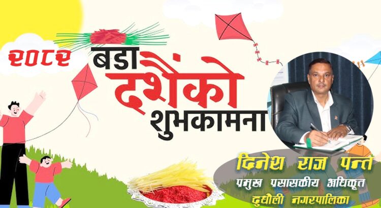 नेपालीहरूको महान चाड विजया दशैं २०८२ का अवसरमा सम्पूर्ण दुधौली नगरवासीमा सुख, शान्ति, समृद्धि र उत्तरोत्तर प्रगतिको कामना गर्दछु ।