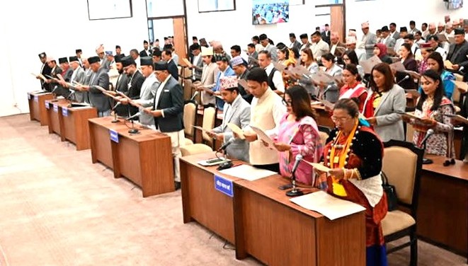 बुधवार राष्ट्रपति रामचन्द्र पौडेलबाट शपथ लिएका ज्येष्ठ सदस्य केसीले अन्य २७४ सदस्यलाई शपथ गराउनुभएको हो । ४७ जना सांसदले आफ्नो मातृभाषामा शपथ लिएका छन् ।
